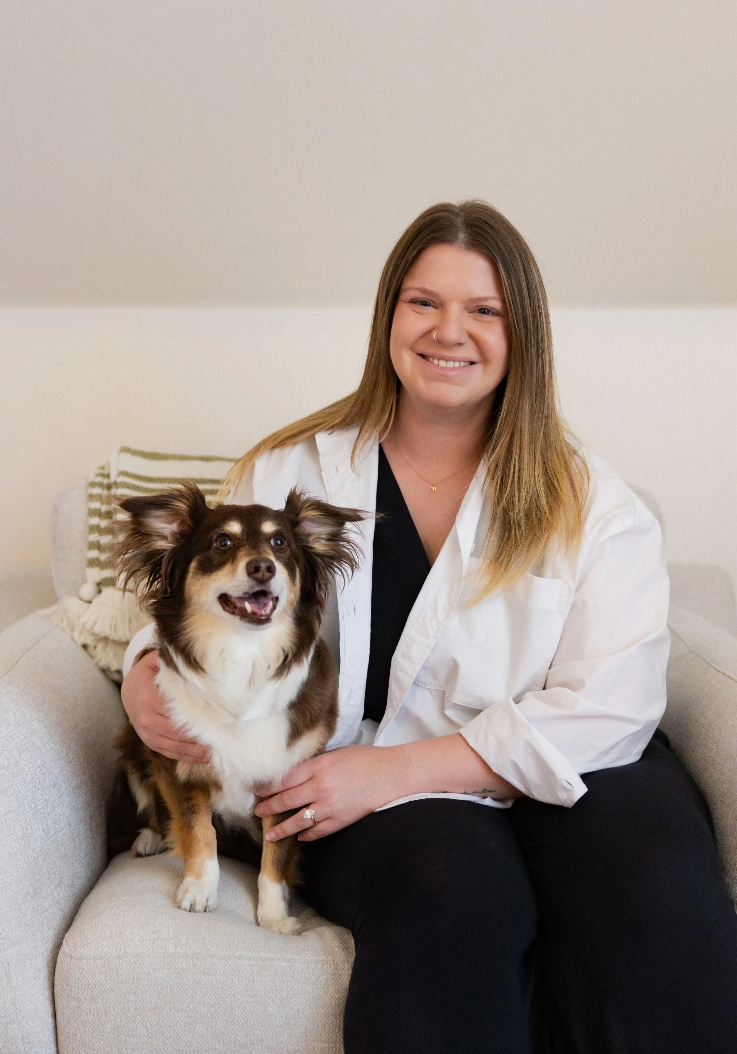 Harliegh is a long-haired Dachshund- Mini Aussie mix and she loves hiking and taking naps in the sun. In sessions Harleigh might sit by your feet, on the couch with you, or on the floor next us while getting lots of belly rubs. She looks forward to meeting you!